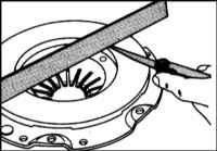 6. Зачистите нажимной диск и маховик мелкой наждачной бумагой.