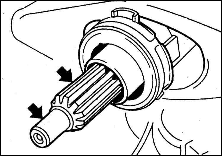 6. Смажьте шлицевые пазы первичного вала тонким слоем