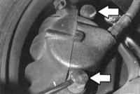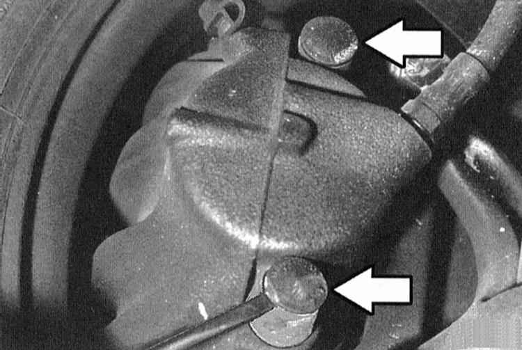 13 Проверьте визуально два болта крепления суппорта, при