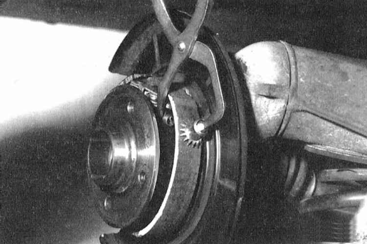 на иллюстрации. | 7 С помощью щипцов для тормозной пружины