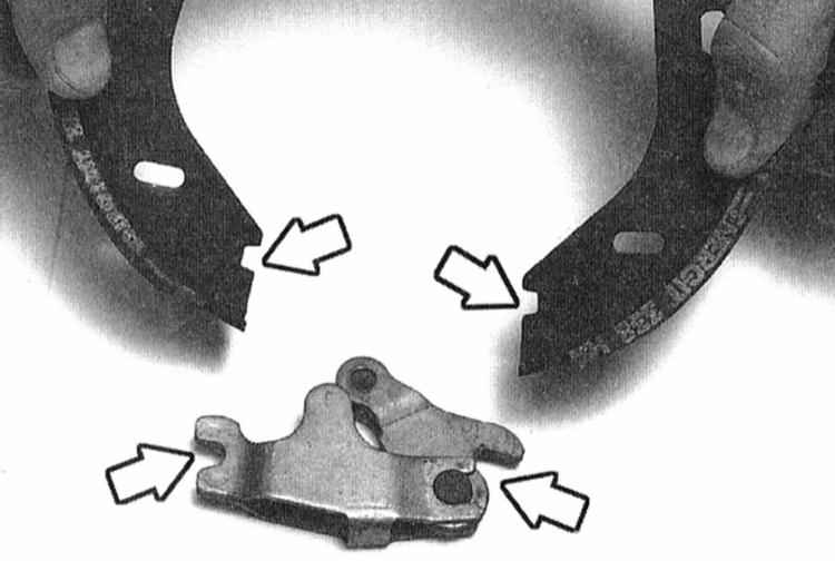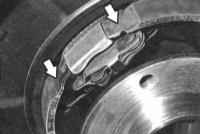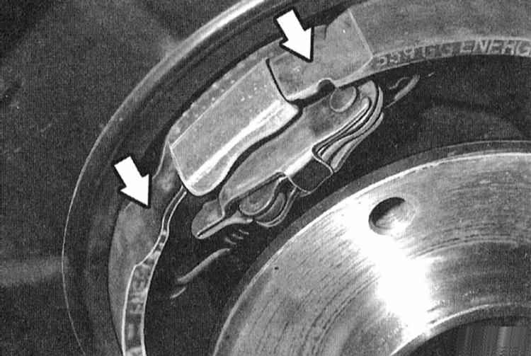 8 Тормозные колодки (стрелки на иллюстрации) должны прилегать к опоре скобы