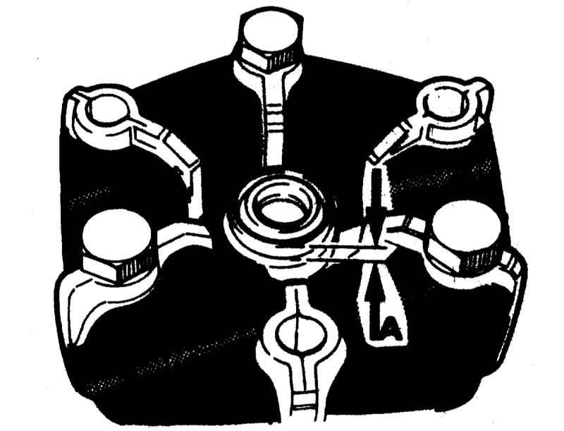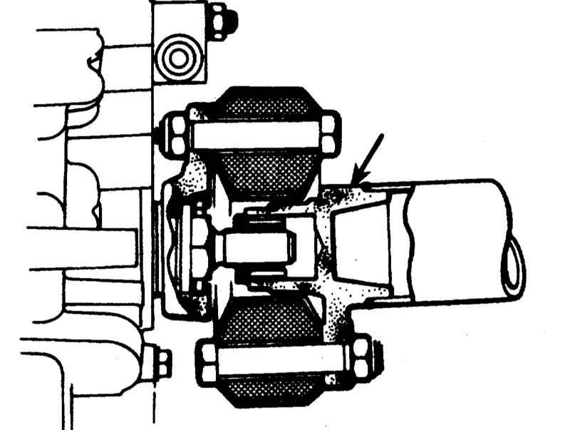 Для проверки центрующей направляющей отдайте гайки и болты крепления эластичной муфты к фланцу трансмиссии, ухватитесь за передний конец карданного вала и попытайтесь подвигать его вверх и вниз, а также в стороны. Вал должен плотно сидеть на пальце фланца трансмиссии. Если имеется заметный люфт, замените вал.