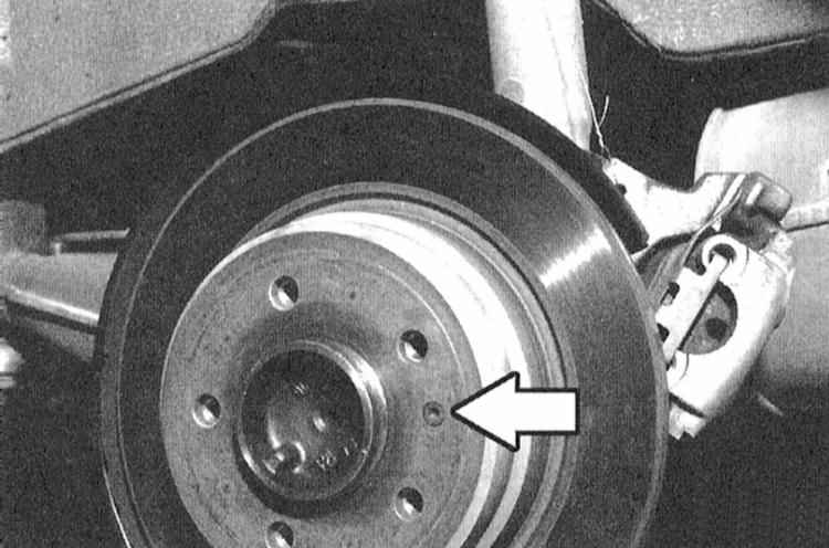 8 Установите тормозной диск на ступицу и поверните так, чтобы совпали