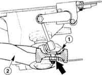 4 Автомобили с ксеноновыми лампами: Снимите уголок -1- углового шарнира регулировки дальности света с поперечного рычага -2-.