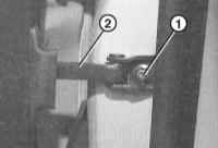 11 Ослабьте отверткой Torx винт -1- крепления скобы замка на стойке В двери и ослабьте винт -2- так, чтобы скоба могла перемещаться. Внимание: Регулировку глубины -3- менять не следует.