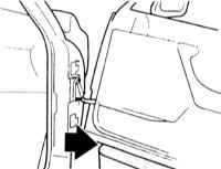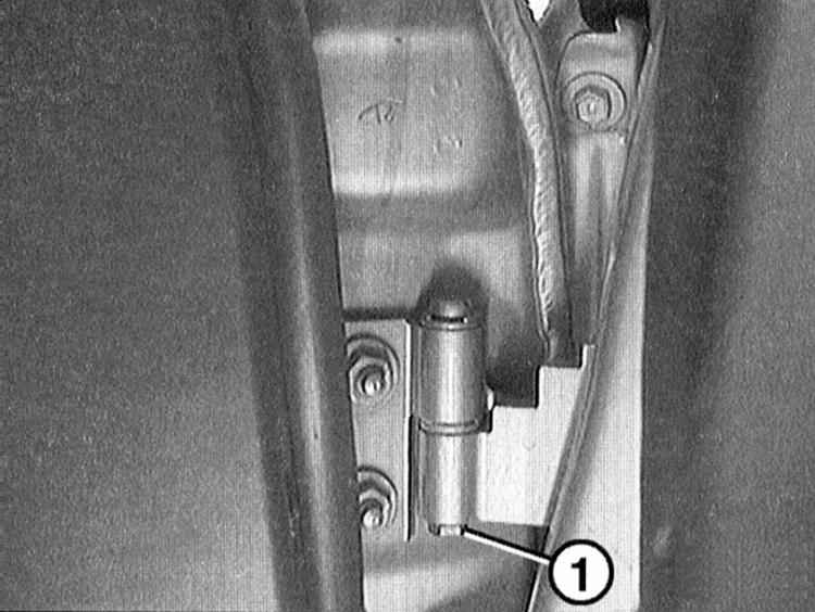10 Закройте дверь и проверьте, равномерный ли зазор между дверью и кузовом. При необходимости отверните болты у петель и отрегулируйте дверь верхними болтами по высоте.