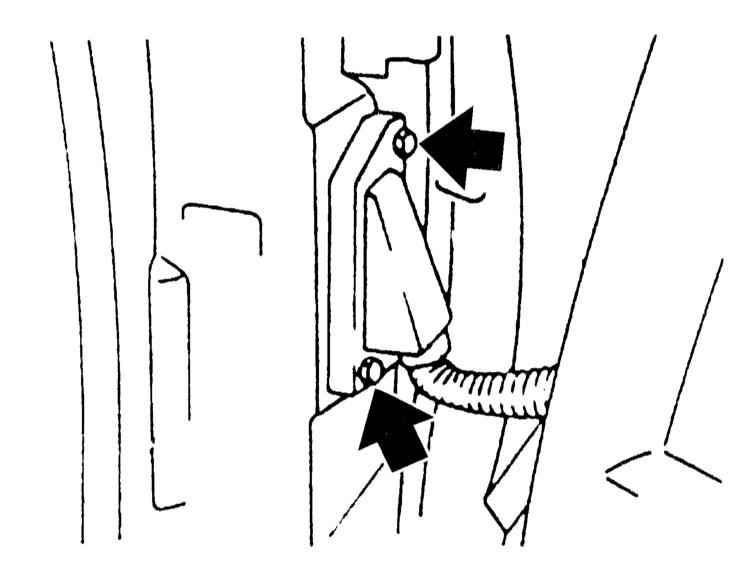 Если необходимо снять скобу, имейте в виду следующее. Вместо верхнего винта вверните шпильку, чтобы резьбовая планка не упала в стойку двери. Затем отверните нижний винт и снимите скобу.
