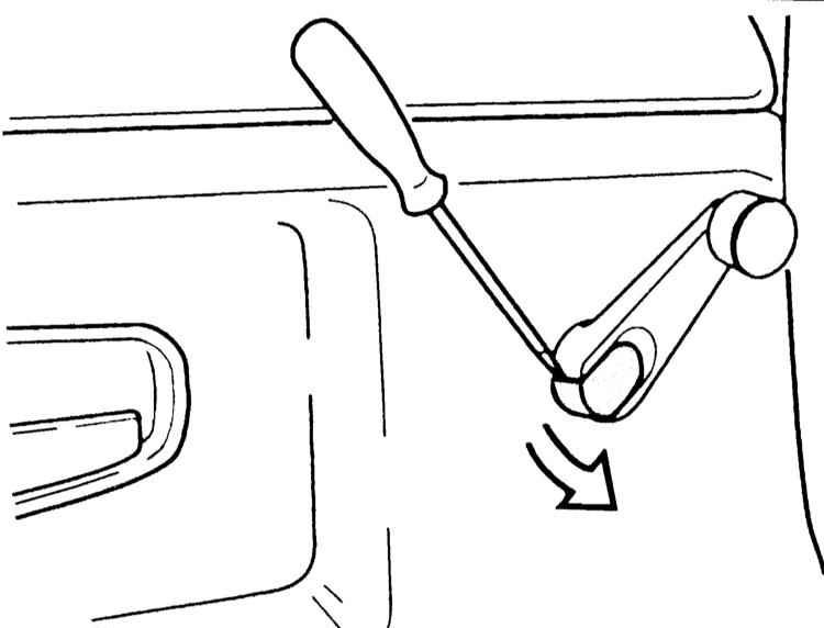 - Снимите рукоятку стеклоподъемника с оси вместе с шайбой. |
