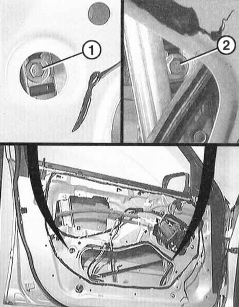 2 Снимите облицовку двери и снимите крышку двери в задней части, обратитесь к соответствующему разделу.