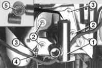| 4 Вставьте на место амортизатор и закрепите его моментом 50 Н•м (ключ на 13 мм) или 10 НЧм (ключ на 8 мм) или приклепайте обычными взрывными заклепками. 5 Закрепите соединитель кабеля, если он снимался и зафиксируйте кабель. 6 Установите передний бампер. |