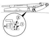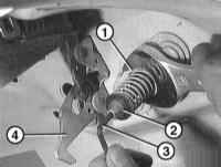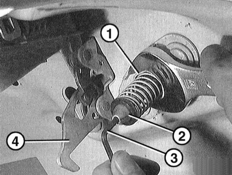 12.3.8. Подгонка капота  | Привод, соединяющий оба замка капота, должен быть отрегулирован так, чтобы он не имел зазора. Оболочка привода должна полностью сидеть в направляющей в замке. В противном случае вследствие натяжения привода капота трос в направляющей может выскользнуть, после чего замки будет не открыть. Так как капот пригоняется и крепится в неокрашенном кузове, вследствие последующего смещения капота могут обнажиться его неокрашенные поверхности. |  | 1 Отрегулируйте винт -1- петли слева и справа, получив размер А = 12 мм. | 2 Проверьте упор -2-, при необходимости замените петлю. Регулировка привода капота  | 3 Отрегулируйте привод капота так, чтобы он не имел люфта.  | Трос привода не должен быть натянут. Для наглядности привод и замки показаны в снятом состоянии. | | 4 Полностью вверните упор капота. Боковая установка капота 5 Ослабьте винты -2- и -3- петли -1- слева и справа так, чтобы капот мог сместиться. 4 – крепление кабеля массы (обратитесь к иллюстрации 13.3). 6 Закройте капот и выставьте по отношению к крыльям спереди и по бокам.  | Если диапазона регулирования не хватает, ослабьте винты крепления петель капота и сместите петли на кузове. | 7 Осторожно откройте капот и закрепите винты петель. Регулировка капота по высоте  | 8 Ослабьте винты -1- крепления обеих упоров так, чтобы упоры можно было сместить. 3 – захватный крючок. | 9 Несколько раз закройте капот так, чтобы можно было совместить замки. 10 Затяните винты крепления упоров замка.  | 11 Отверните контргайку -1- и поверните упор -2- торцевым ключом -3-. | 12 Таким образом, выставьте капот на одинаковую высоту по отношению к крыльям. При этом следите за параллельным зазором по отношению к переднему бамперу. 13 Затяните контргайку. 14 Проверьте, правильно ли сопрягаются замки и крючки -4-, при необходимости повторите регулировку. Регулировка упора 15 Откройте капот.  | 16 Выверните упор так, чтобы капот находился под некоторым напряжением. Для этого отформуйте из пластилина два столбика высотой примерно 10 мм. Установите столбики на упоры и закройте капот. Откройте капот и измерьте высоту упора и сжатого столбика. Выверните упоры на величину полученного размера + 0.5 мм. Таким образом, отрегулируйте все упоры. | 17 Проверьте, прилегает ли упор без зазора ко всем упорам, в противном случае повторите регулировку.  | Капот не должен находиться выше крыла, иначе может возникнуть шум ветра при движении. |