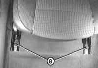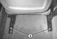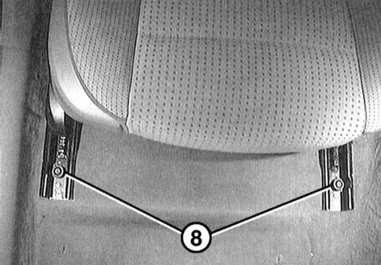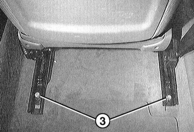 26 Отверните два болта крепления шины сиденья спереди и опрокиньте сиденье назад.