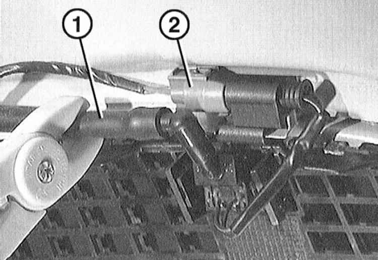 2 Зажмите шланг стеклоомывателя -1- и снимите его.