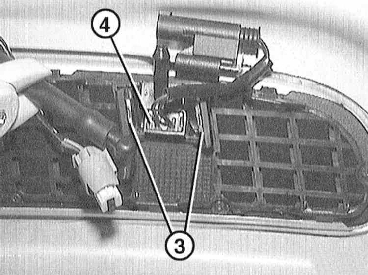 4 Вдавите фиксаторы -3- и выньте форсунку -4- из капота