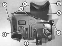 7 Отсоедините электрические провода лампы подсветки района ног, звукового сигнала -6- и коробки бортовой диагностики. |