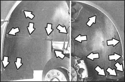 кузова. Затем снимите снизу в передней области прилегания крыла