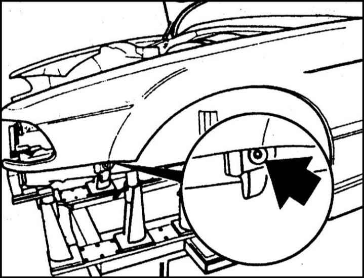 9. Отсоедините внутреннее крыло от стойки автомобиля. |
