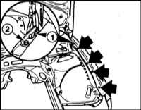 12. Выверните верхние болты крепления (стрелки на