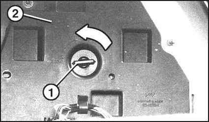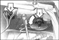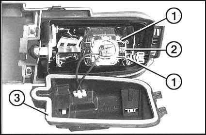 5. Поверните влево до упора держатель лампы дальнего света (2) и