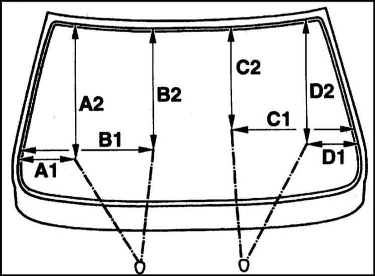 2. Размеры для регулировки струй стеклоомывателей.
