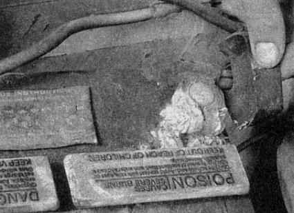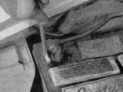 расплескивание электролита. Отсоедините отрицательный провод батареи и подсоедините