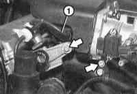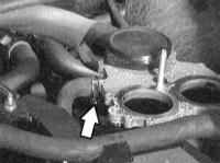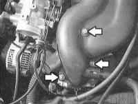 14 Отверните болты крепления и отсоедините опору впускного трубопровода (стрелки на иллюстрации). |