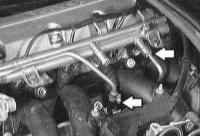 13 Отсоедините подающий и возвратный топливные шланги (стрелки на иллюстрации). |