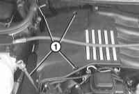 5 Отверните болты крепления -1- и снимите крышку двигателя. |