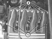 12 Отверните болты -1- и гайки -2- у впускного трубопровода. |