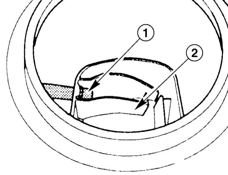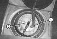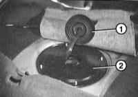 11 Отсоедините топливный шланг -2- от датчика запаса, для чего ослабьте
