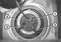 3 Снимите резиновый сальник -1- слева или справа под сиденьем. Откиньте изоляционный