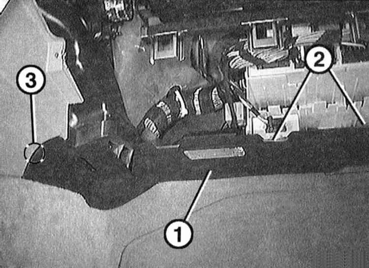5.4.1. Снятие, установка и проверка реле топливного насосаДержатель реле  | | 1 — реле топливного насоса 2 — реле вентилятора отопителя | 3 — реле противотуманных фар 4 — реле звукового сигнала | Реле топливного насоса находится на держателе реле позади блока предохранителей. Оно снабжает топливный насос электрическим током. Посредством предохранительного выключателя оно прерывает подачу топлива, когда при включенном зажигании не подаются импульсы оборотов, например, когда двигатель заглох. Если для проверки системы впрыска необходимо включить топливный насос при неработающем двигателе, отсоедините реле и соедините коротким вспомогательным кабелем клеммы 30 и 87b. Диаметр провода должен составлять 1.5 мм. | | | 1 Снимите вещевой ящик, обратитесь к Разделу Снятие и установка левого вещевого ящика и Снятие и установка правого вещевого ящика 2 Выньте с помощью небольшой отвертки сбоку лампу подсветки и расстыкуйте разъем.  | 3 Отверните винты (стрелки на иллюстрации) и снимите вниз крышку -1-. С обратной стороны крышки выньте провод лампы подсветки вещевого ящика. |  | 4 Отожмите немного назад крышку -1- и выньте из направляющих -2-. Отсоедините скобы в районе -3-. |  | 5 Отверните винт (стрелка на иллюстрации) и немного сместите вниз держатель реле. | 6 Снимите реле топливного насоса -1- . | | | |  | Для проверки реле топливного насоса аккумуляторная батарея должна быть заряжена. | 7 Проверьте предохранитель системы впрыска. Расположение предохранителей показано на схеме в блоке предохранителей.  | 8 Выньте реле -3-.Соедините коротким вспомогательным проводом клеммы 30 и 87b (дизельный двигатель: клемма 87). При этом не повредите чувствительные контакты реле. Если слышно, как включается топливный насос, замените реле. | 9 Если насос не работает, проверьте провода, идущие к реле и насосу. При необходимости замените. 10 Проверьте реле/топливный насос. | | | | | 11 Установите на место реле.  | 12 Отклоните вверх держатель реле и закрепите винтом. |  | 13 Вставьте крышку в направляющие. |  | 14 Проложите провод к лампе подсветки вещего ящика с обратной стороны верхней крышки. Закрепите крышку. | 15 Присоедините лампу подсветки и зафиксируйте ее. 16 Установите на место вещевой ящик, обратитесь к Разделам Снятие и установка левого вещевого ящика и Снятие и установка правого вещевого ящика | |