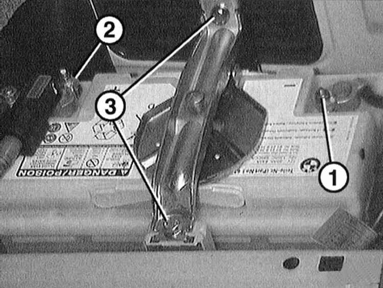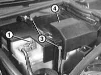8 Модели 320i, 323i, 328i: Установите батарею таким образом, чтобы полюса указывали в сторону крыла.