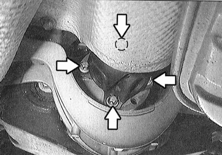 2 Отверните болты крепления и снимите теплозащитные экраны