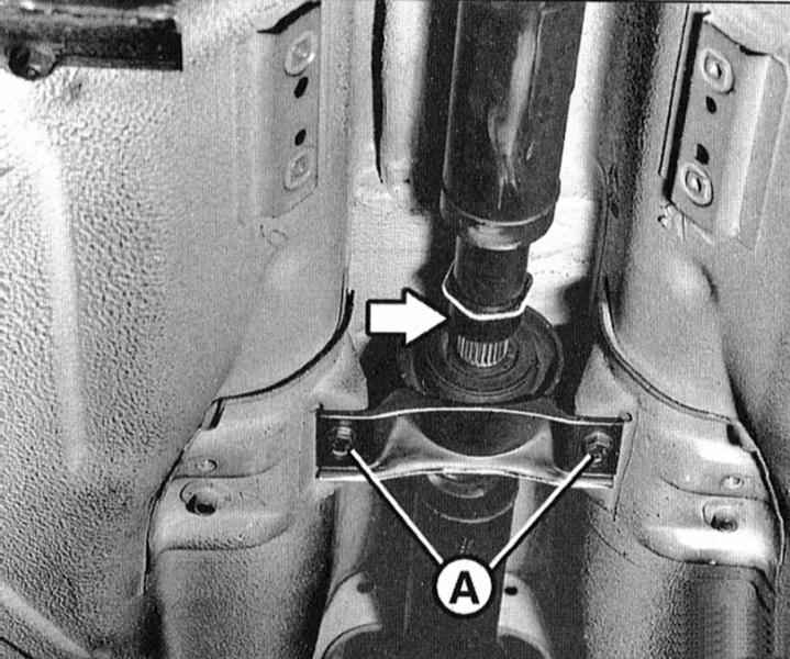 7 Ослабьте болты крепления -А- центрального подшипника, обратитесь