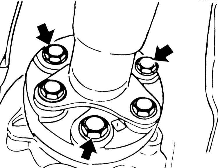 10 Немного наклоните вниз карданный вал у центрального подшипника