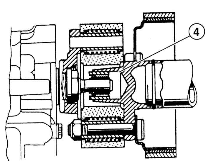Отожмите передний фланец карданного вала назад, при этом карданный