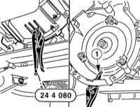 44 Снимите зажим с картера коробки и вверните три болта крепления преобразователя