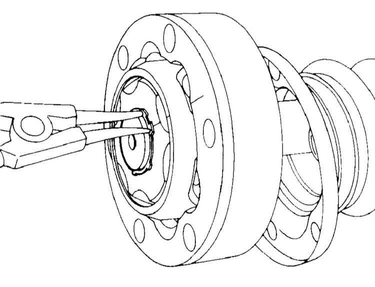 19 Поставьте новое стопорное кольцо с помощью щипцов, следя за его